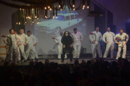 Eine weitere Eigennummer der KGT war, wie jedes Jahr, der Showtanz der Elferräte mit Elferratsfrauen und dem Trainerstab. Passend zum letztjährigen Motto “Zurück in die 80er” besuchte das amtierende Prinzenpaar ein Kino, wo es sich die Film- und Musik-Highlights der Achtziger ansah. Da tanzten zu “Ghostbusters” die in weißen Overalls gehüllten Geisterjäger über die Bühne, nachdem sie zuvor noch als Sithlords und Jediritter von “Star Wars” gegeneinander mit ihren Laserschwertern kämpften. Natürlich durften auch Klassiker wie “Top gun”, “Footloose” oder die “Blues Brothers” nicht fehlen, bevor das Spektakel im Finale zu “Dirty Dancing” endete, welches vom Prinzenpaar eingeläutet wurde. Trainiert wurde die ganze Truppe von Prinzessin Larissa höchstpersönlich zusammen mit Elferrat Tommaso Pellegrini.